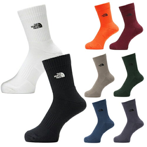 2足組 カラーソックス Polygiene Stayfresh加工 つま先・かかと補強糸 アーチサポート オーガニックコットン□[NN82310]THE NORTH FACE(ザ・ノースフェイス) TNF ロゴ 2P クルー(ユニセックス)ソックス 靴下