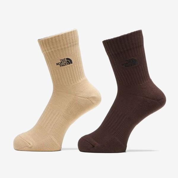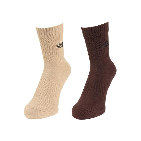 ザ・ノース・フェイス(THE NORTH FACE)(メンズ、レディース)TNFロゴ クルーソックス 2足組 NN82310 DK 抗菌 防臭 ベージュ ブラウン